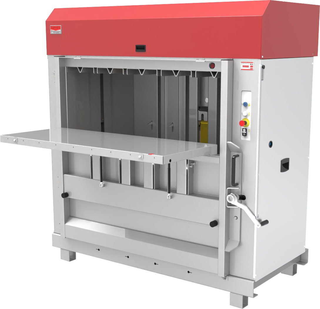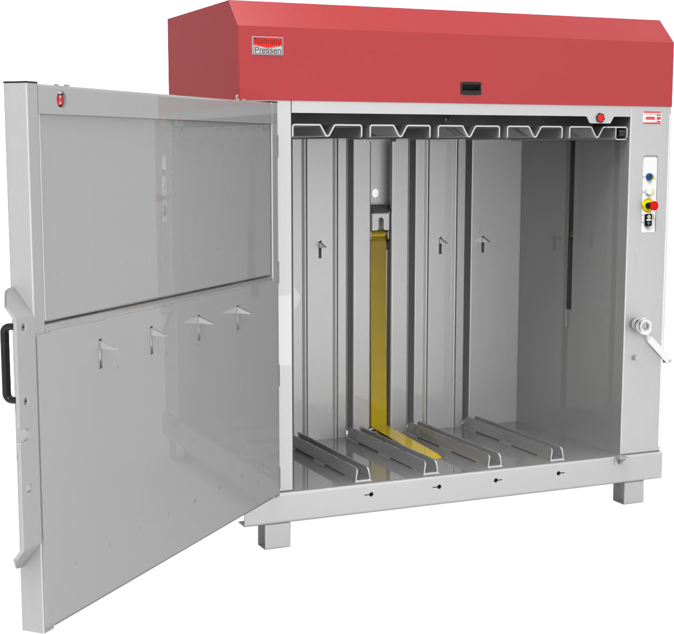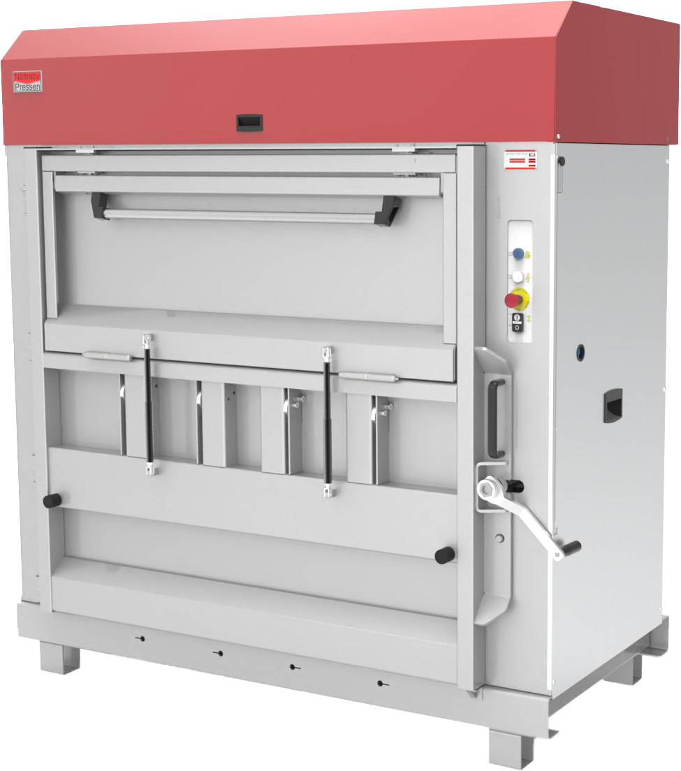 Pappressen har en meget stor indkastningslåge. Det giver mange fleksible placeringsmuligheder og gør det nemt at fylde pressen.