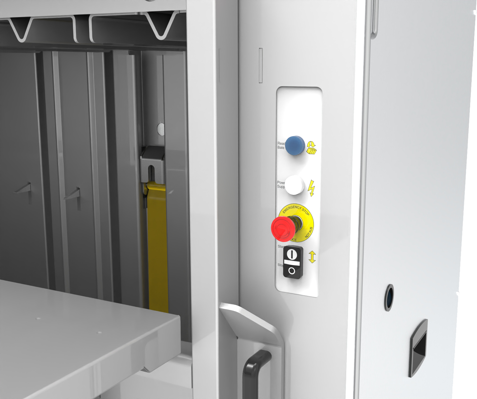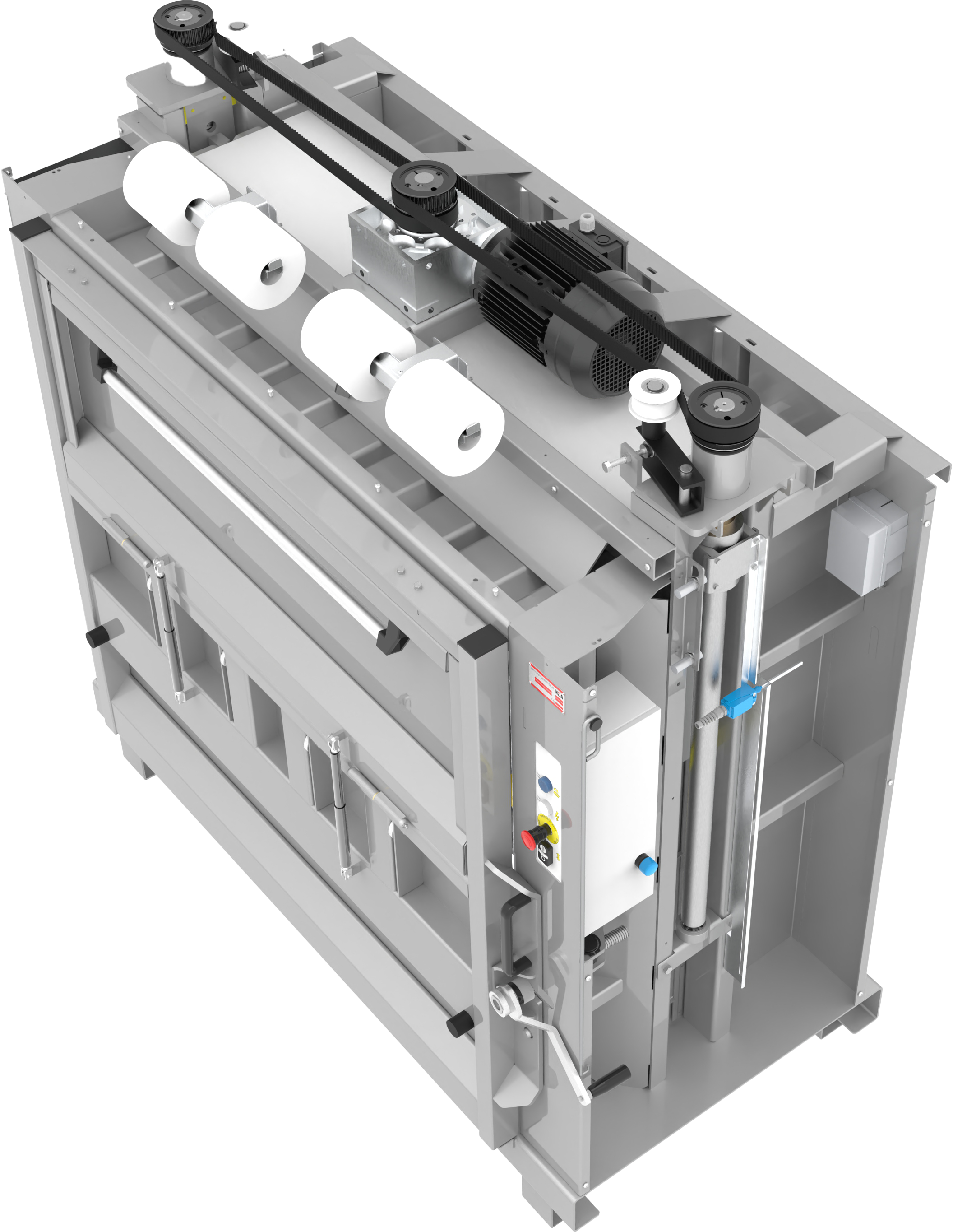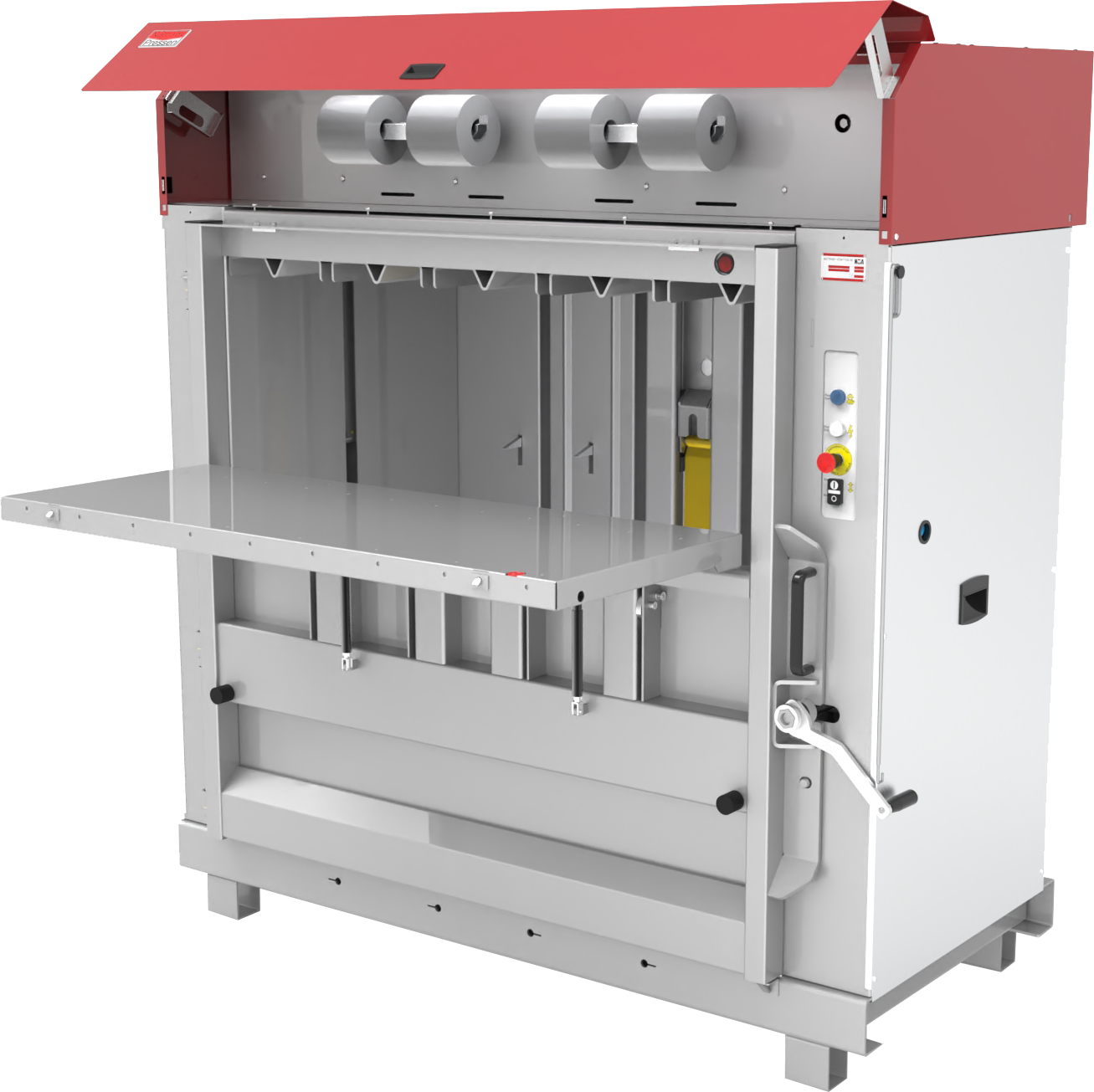 Pappressen har en meget stor indkastningslåge. Det giver mange fleksible placeringsmuligheder og gør det nemt at fylde pressen.