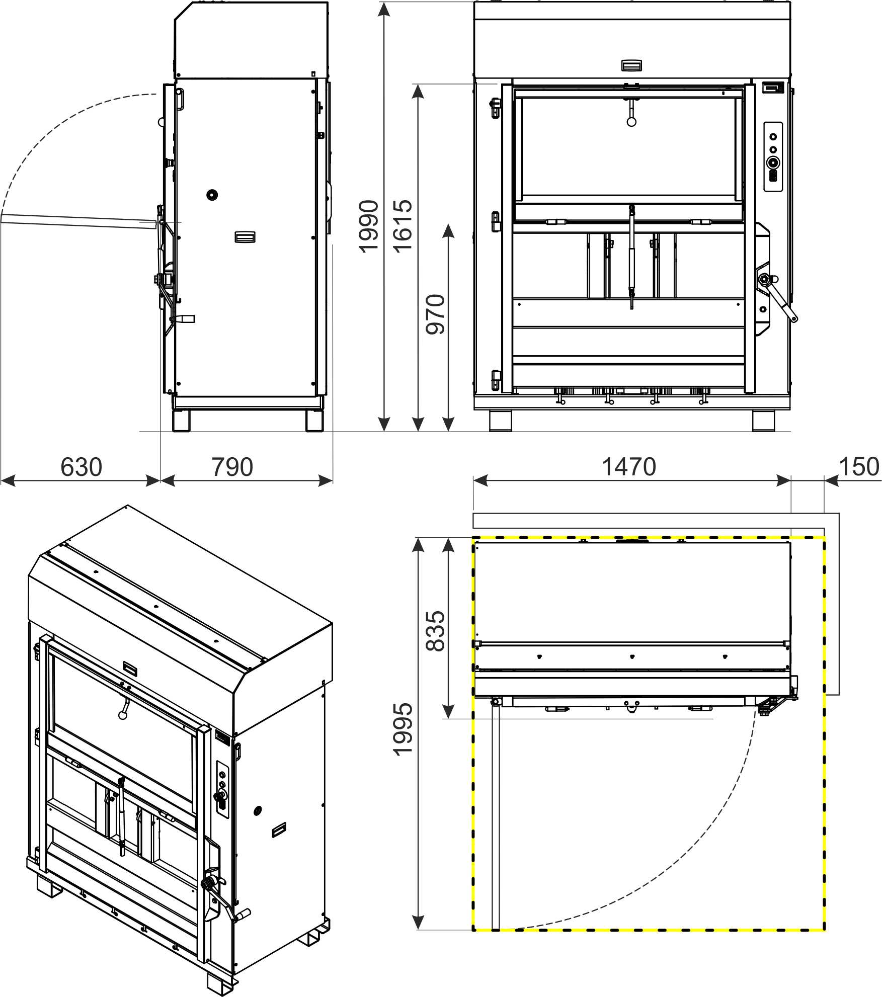Pappressen har en totalhøjde på under 2 meter og er udstyret med en stor indkastningslåge. Det giver mange fleksible placeringsmuligheder og gør det nemt at fylde pressen.